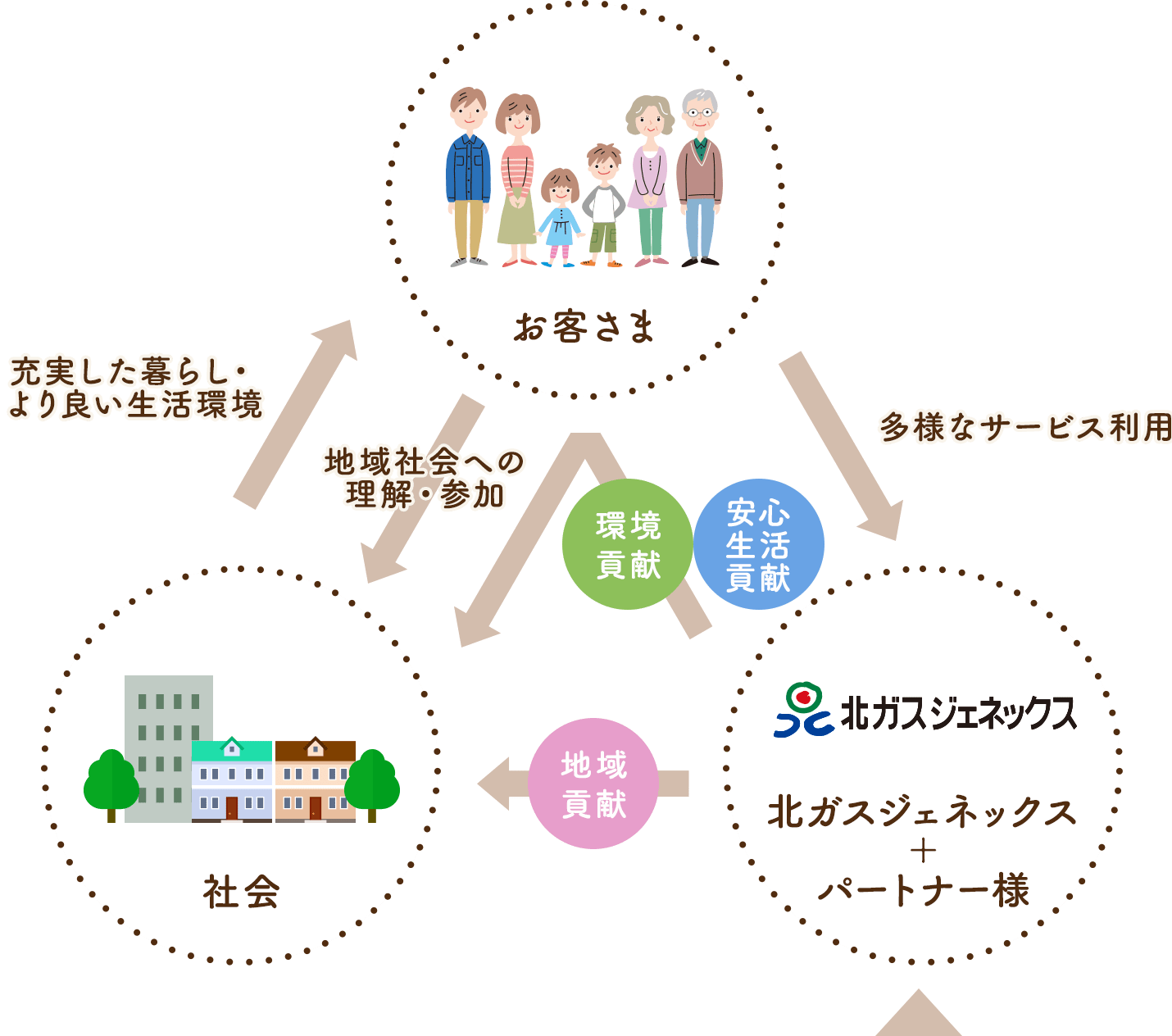 私たち北ガスジェネックスが、お客さまや地域の皆さまと共に「気持ちいい暮らし」の実現に向けて取り組む活動を表しています。